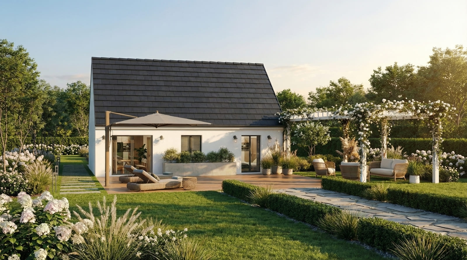 Grâce à ses excellentes performances énergétiques RE2020, cette maison garantit confort et économies d’énergie tout en restant accessible à un prix compétitif.